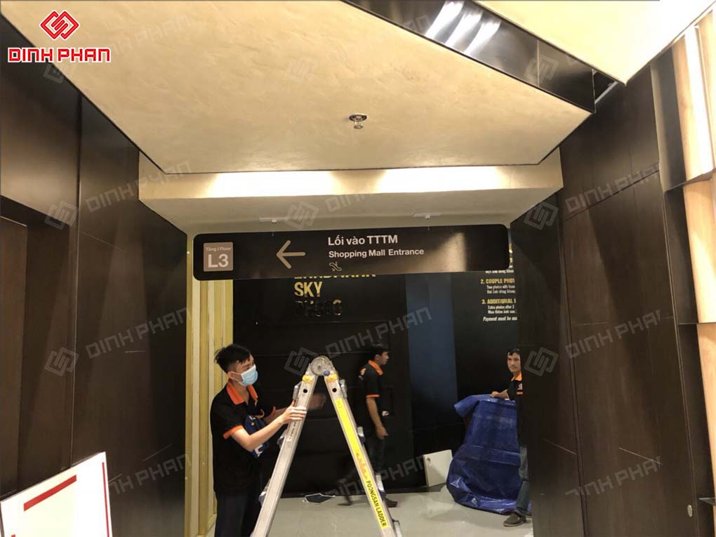 + Làm bảng hiệu trung tâm thương mại hông inox mặt poly dán decal 3M